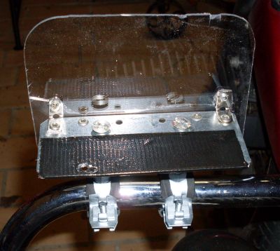 Da die Plexiglasscheibe mit der Zeit verkratzte und / oder durch die Vibrationen Risse bekam, wurde diese später durch eine Aluplatte ersetzt. In diese wurde mit Silikon ein Kameragewinde aus einem alten Filterring geklebt und ein UV-Filter geschraubt.